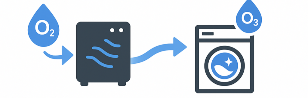 Our laundry purifier uses the natural cleaning power of ozone (O₃) — one of the most effective oxidizers found in nature. When oxygen (O₂) passes through our advanced generator, it’s transformed into ozone and infused directly into your cold water supply.